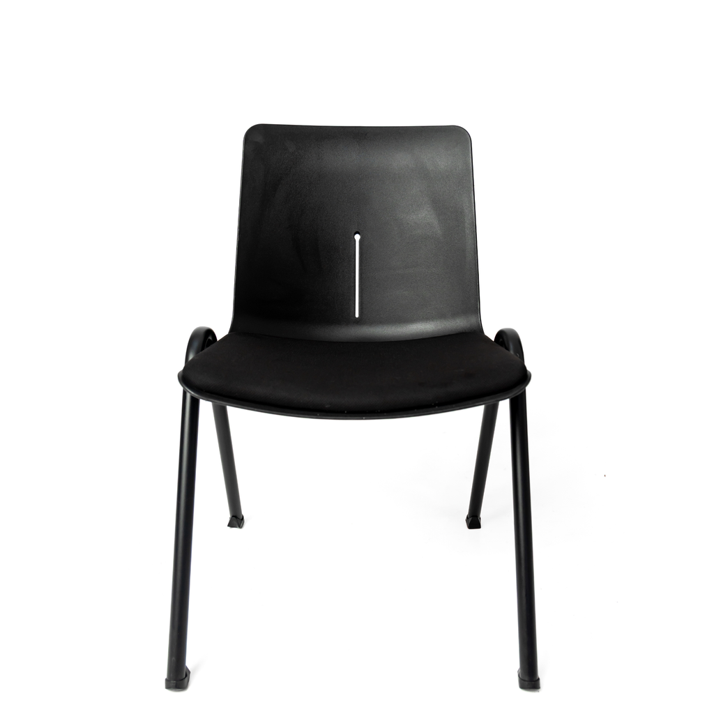 Material: asiento y respaldo de polipropileno de alta resistencia, con asiento tapizado en tela de alta durabilidad.