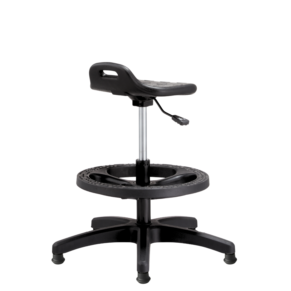 Esta silla operativa de uso industrial está diseñada para brindar comodidad y resistencia en jornadas prolongadas de trabajo.